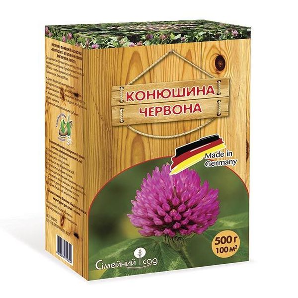 Конюшина Червоний Призначена для багаторічного польового кормовиробництва та для заготівлі конюшинного сіна. Містить багато білка та має відмінну врожайність. Відрізняється потужним початковим розвитком та відмінною резистентністю до грибкових захворювань. У сумішах з іншими травами дає повноцінний та якісний основний корм. Особлива відмінність конюшини червоної в тому, що за допомогою біотехнічного методу насіння прищеплюються штамами бульбочкових бактерій (Rhizo), а потім покривається оболонкою. У свою чергу бактерії Rhizo: замінюють мінеральні азотні добрива, залишаються в насінні і одразу потрапляють на корінь паростка довго зберігають життєдіяльність, надійно захищені від ультрафіолетового випромінювання та екстремальних температур. Упаковка: коробка - 0,5 кг Виробник: Feldsaaten Freudenberger (Німеччина). Упаковщик: ТМ Сімейний сад Норма висіву: 1 кг - 200 кв.м. / 0,5 на 1 сотку / 50 кг на 1 га Глибина висіву: 5-10 мм. Мінімальна висота стрижки: 20 мм. Рекомендований термін посіву: з ранньої весни до пізньої осені.