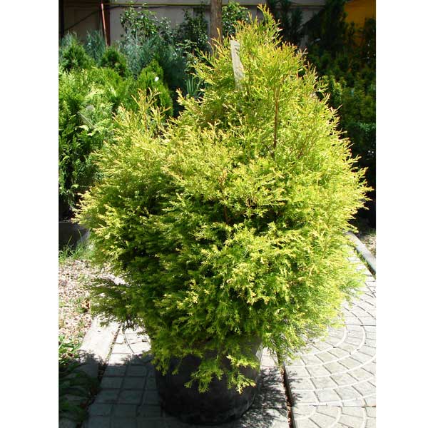 Thuja occidentalis "Rheingold" - густий чагарник, що повільно росте, досягає близько 130 см висоти. У молодому віці форма крони куляста, пізніше - яйцеподібна. Хвоя інтенсивно-жовтого забарвлення, взимку коричнева. Гілки тонкі, диморфні, частково голчасті, частково лускоподібні. Добре росте на сонці та в півтіні. Має гарну зимостійкість. При посадці потребує родючого і вологого грунту. Дуже погано переносить тривалий застій води. Добре відгукується на всі види обрізок, які можна проводити будь-якої пори року. Рекомендується для одиночних та групових посадок на невеликих ділянках, альпійських гірках, придатна для низьких огорож. Висота рослини: 30-40 см.