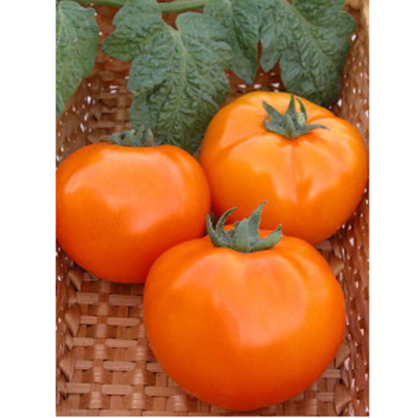 Рослина детермінантна, середньостигла, відносно невисока 70-80 см, але в умовах теплиці може зрости понад один метр, у такому разі рекомендується підв'язувати кущі. Великоплідний сорт, плоди 250-350 г, іноді досягають до 500 г. За формою плоди плоско-огруглі, при повному дозріванні яскраво-жовтогарячі із золотистим відтінком. Має відмінні смакові якості. Сорт відноситься до салатних, але це не обмежує його застосування, з них виходить відмінний томатний сік, різні соуси, і завдяки щільній шкірці добре консервуються.