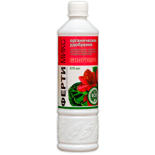 ФЕРТІмікс біогумус універсал - органічне добриво на основі біогумусу (продукту переробки червоного каліфорнійського черв'яка) для всіх видів кімнатних та садових культур Ефективність застосування: - стимулює коренеутворення та зростання листя, - покращує декоративний вид рослин, - прискорює бутоноутворення, - підсилює яскравість, Знижує захворюваність на рослини. Склад: Гумус: до 15 г/л. Макроелементи: азот -20г/л, фосфор -10г/л, калій -15г/л В2, В6, В12, РР