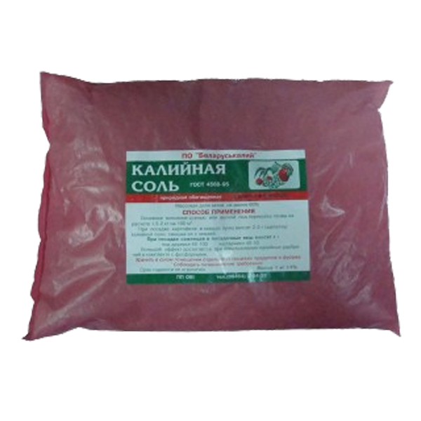 Вигляд: Мінеральне. Класифікація: Водорозчинне. Тип: Універсальне. Призначення: Калійна сіль допомагає збільшити врожайність плодових майже двічі. Її також застосовують для зміцнення вегетативних пагонів різних овочевих культур (томатів, баклажанів). Калій практично не вимивається з ґрунту атмосферними водами, тому в основному його застосовують для індивідуального підживлення або добрива полів перед посадкою буряків, кукурудзи, капусти. Застосування: Важливо точно дізнатися, що купити: сіль або хлористий калій. Незважаючи на ідентичний склад, у цих добривах різний відсотковий вміст калію. У першому випадку це 40%, у другому – 60%. Вони візуально різняться за кольором. При внесенні на поле береться 200 г солі на 1 акр землі. У разі індивідуального кореневого підживлення використовується 25 грам на 10 літрів води. Склад: Калійна сіль. Вага: 1 кг. Країна: Україна.
