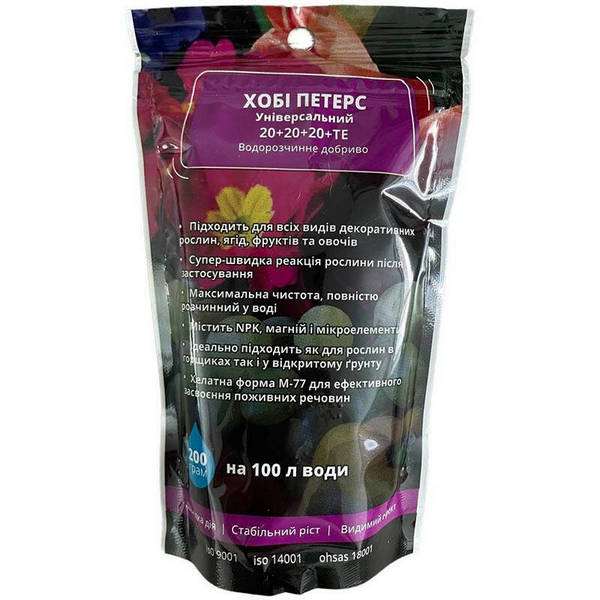 Для досягнення найкращих результатів рекомендується використовувати Хобі Петерс Універсальний 20-20-20+Te один раз на тиждень. Норма застосування становить 1-2 грами на літр води. Добриво можна застосовувати як для листового живлення, так і додаючи до води для поливу. Для максимального розчинення приготуйте розчин за 1-2 години до використання і добре його перемішайте.