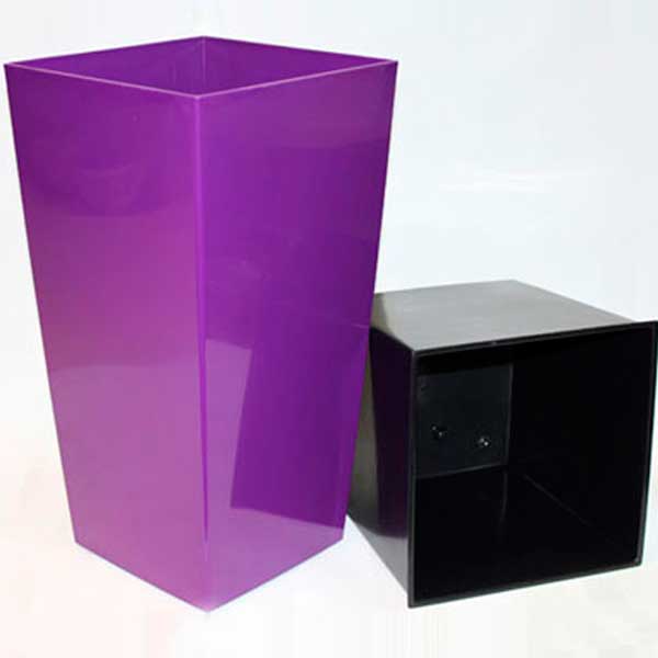 Стильне кашпо з вазоном-вкладкою, виготовлене з якісного пластику в сучасному стилі. Таке кашпо легко миється, при тривалій експлуатації практично не втрачає зовнішнього вигляду, стійке до різних температурних коливань. Завдяки зручній конструкції, дозволяє наповнювати землею лише вазон-вкладку, будучи одночасно контейнером для води, що стікає. Колір фіолетовий. Глибина вкладки: 28 см. Матеріал: пластик. Країна виробник: Польща.