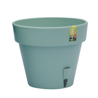 Пластиковий горщик Латина "Santino" із системою автополиву. Містить керамогранітний дренажний картридж, який акумулює вологу та поступово віддає її рослині. У нижній частині вазону є спеціальний висувний носик для поливу рослини знизу та оглядове віконце для контролю рівня води в області кореневої системи рослини.