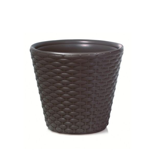 Матеріал: пластик Колір: антрацит Текстура: плетений ротанг Діаметр: 34,8 см Висота:< /b> 32,4 см Об'єм кашпо: 19 л