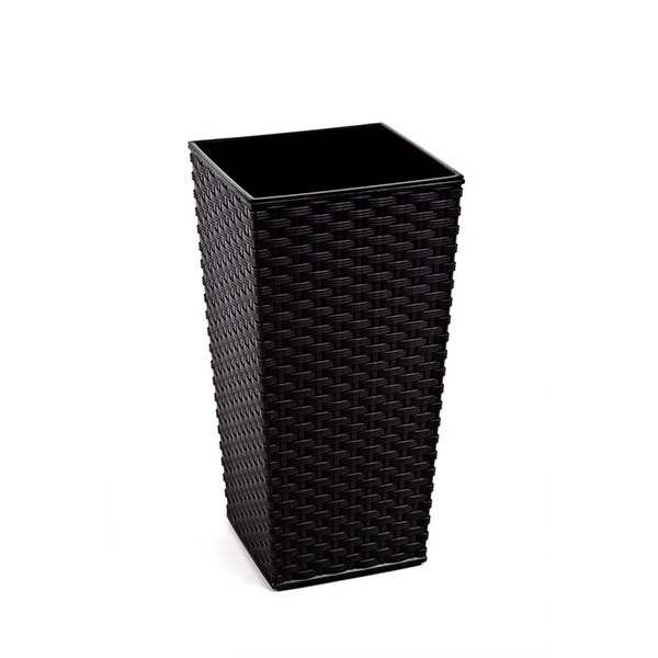Стильне кашпо з вазоном-вкладкою, виготовлене з якісного пластику в сучасному стилі. Таке кашпо легко миється, при тривалій експлуатації практично не втрачає зовнішнього вигляду, стійке до різних температурних коливань. Завдяки зручній конструкції, дозволяє наповнювати землею лише вазон-вкладку, будучи одночасно контейнером для води, що стікає. Колір: чорний Глибина кашпо: 28 см Матеріал: пластик Країна виробник: Польща