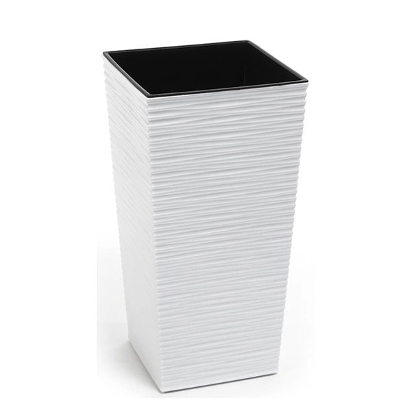 Стильне кашпо з вазоном-вкладкою, виготовлене з якісного пластику в сучасному стилі. Таке кашпо легко миється, при тривалій експлуатації практично не втрачає зовнішнього вигляду, стійке до різних температурних коливань. Завдяки зручній конструкції, дозволяє наповнювати землею лише вазон-вкладку, будучи одночасно контейнером для води, що стікає. Колір: білий Глибина кашпо: 23 см Матеріал: пластик Країна виробник: Польща
