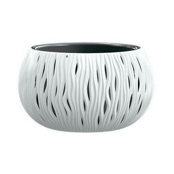 Натхненням для створення круглих горщиків для квітів із серії Sandy стала традиційна кераміка ручної роботи. Декоративний вид горщиків підкреслюється ефектними вертикальними зубцями. Завдяки класичному та чистому виконанню, він є ексклюзивним доповненням будь-якого інтер'єру, а також садів та терас. Виготовлений з якісного матеріалу, що легко миється, стійкого до морозів і несприятливих погодних умов. Модель складається із двох предметів: внутрішня ємність для посадки рослин та зовнішня декоративна. Матеріал: пластик Колір: Білий Об'єм: 1,4 л Діаметр: 18 см Висота: 14 см