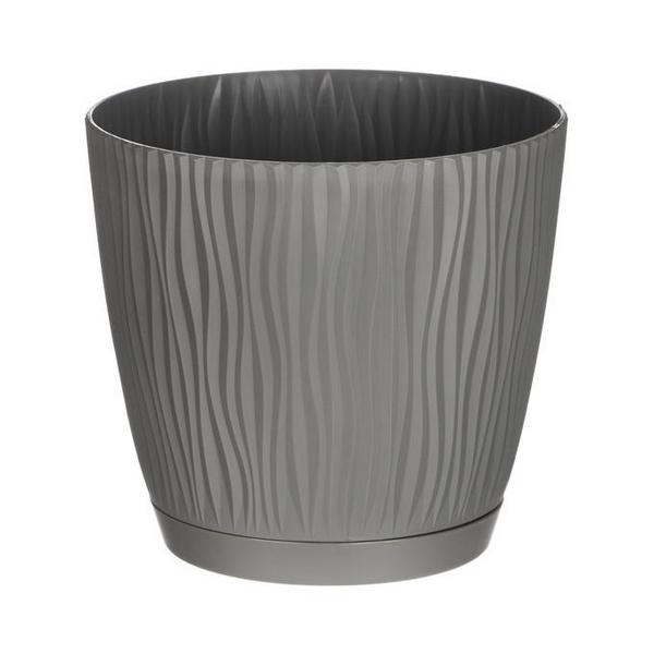 Горщик для квітів Sandy прикрашений хвилястими вертикальними борозенками, що нагадують візерунки на піску пустелі. Цей декоративний горщик для рослин майже так само гарний, як і традиційна кераміка, розписана вручну. Нейтральні, скромні кольори, які гармоніюватимуть із сучасним інтер'єром, лише додають йому чарівності. Виготовлений з товстого, виключно міцного пластику, стійкий до механічних пошкоджень та впливу сонячних променів та морозу. Його можна використовувати не тільки у приміщенні, але й на вулиці, не побоюючись поломки, втрати кольору чи якості. Піддон оснащений системою, що самоблокується. Колір: Сірий Діаметр: 24 см Висота: 23 см Об'єм: 3,9 л