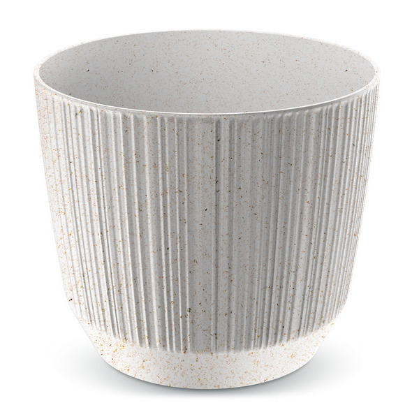 Круглий вазон своєю незвичайною текстурою доповнить будь-який простір. Горизонтальні лінії, створені на горщику, надають йому незвичайного вигляду, а міцний сучасний матеріал забезпечує зручність експлуатації та довговічність.