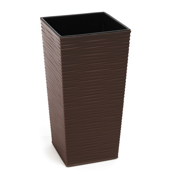 Стильне кашпо з вазоном-вкладкою, виготовлене з якісного пластику в сучасному стилі. Таке кашпо легко миється, при тривалій експлуатації практично не втрачає зовнішнього вигляду, стійке до різних температурних коливань. Завдяки зручній конструкції, дозволяє наповнювати землею лише вазон-вкладку, будучи одночасно контейнером для води, що стікає. Колір: мокко Глибина кашпо: 17 см Матеріал: пластик Країна виробник: Польща