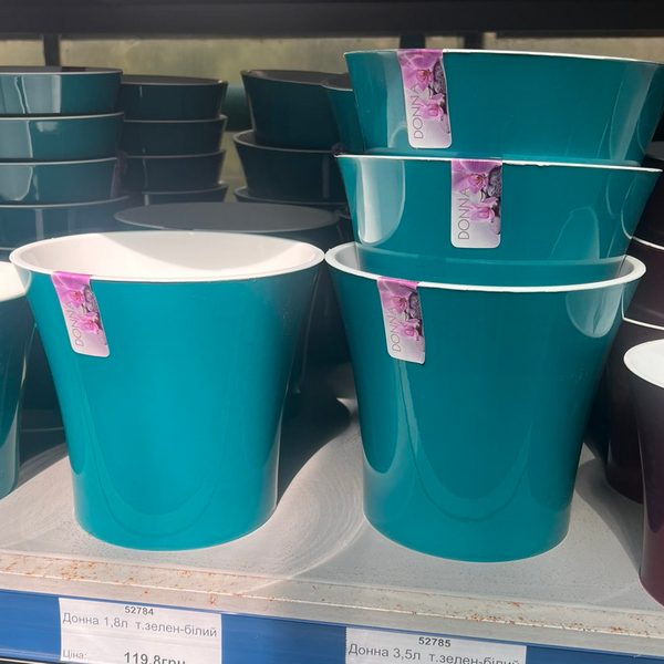 Горщики Donna зроблені з якісного первинного пластику і мають гарні поєднання кольорів.Стильний та функціональний подвійний горщик Donna, українського виробництва.