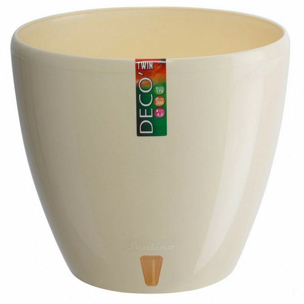 Горщик для квітів Deco Twin із подвійним дном від відомого виробника Santino. Виріб виготовлений із якісного, довговічного пластику. Великий асортимент різних об'ємів горщика і кольорової гами дозволить вам з легкістю знайти те, що чудово доповнить створений вами декор приміщення. Конструкція кашпо передбачає внутрішній вазон із дренажними отворами, в який садиться квітка та зовнішнє кашпо. Внутрішній вазон запобігає надлишковому поливу, а також дає можливість легко промивати квітку при необхідності. Рекомендується насипати на дно шар дренажу з керамзиту заввишки 2-3 см.
