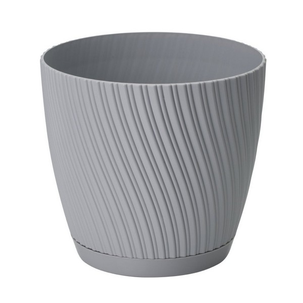 Горщик для квітів Mika виготовлений з високоякісного міцного пластику, має вбудовану підставку, яка кріпиться до горщика і практично не видно: горщик виглядає їдним цілим. Покриття горщика матове та рельєфне – гарне та практичне – не дряпається, не ламається, нагадує вертикальну хвилю, завдяки якій він привертає увагу. Ідеально підходить для використання як у сучасних, так і традиційних інтер'єрах завдяки широкій палітрі кольорів та розмірів.