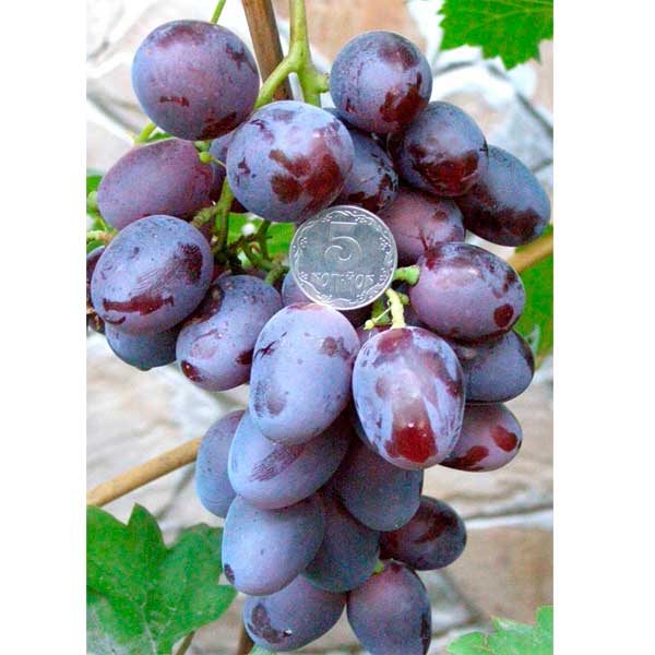 Колібрі – нова гібридна форма винограду раннього-середнього терміну дозрівання, дозріває у середині серпня. Кущі сильнорослі. Квітка двостатева. Гроно велике, ошатне, масою 500-600 г. Ягода округла, дуже велика, червоно-фіолетова, масою 10-15 г і більше. Смак простий, гармонійний. М'якуш хрумкий. Зберігається на кущах до пізньої осені. Висока транспортабельність. Дозрівання пагонів і окореніння живців хороші.